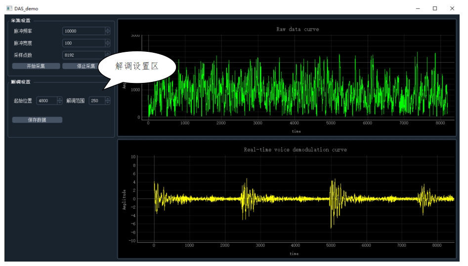 (2)运行DEMO软件“DAS_demo.exe”(打开软件后,自动开始采集数据,并进行解调。