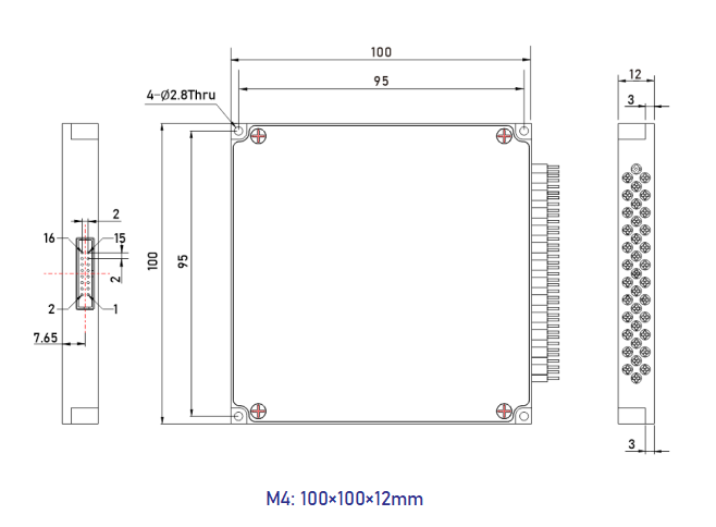 1、M3、M4和M5模块电气接口使用MOLEX 的 87833-1620,推荐客户连接器使用MOLEX 的 87568-1694。